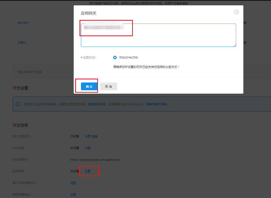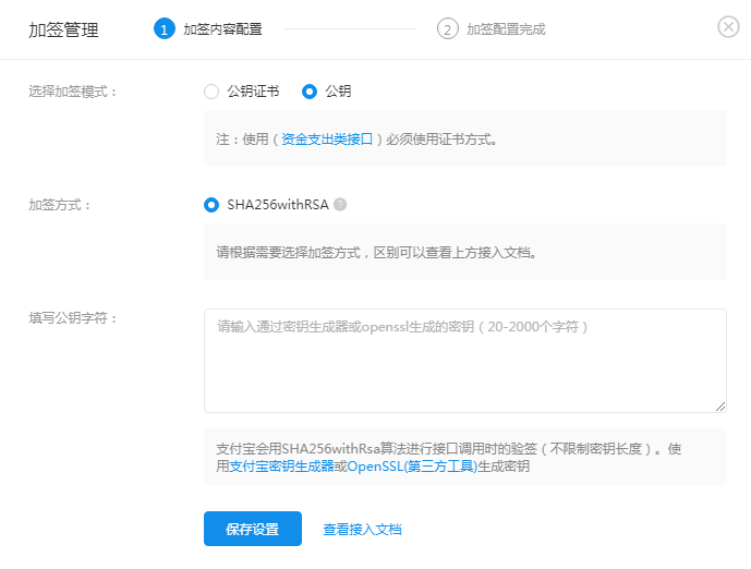 * 身份确认后,弹出一个需要输入应用公钥的弹窗,保存此网页先不要再动