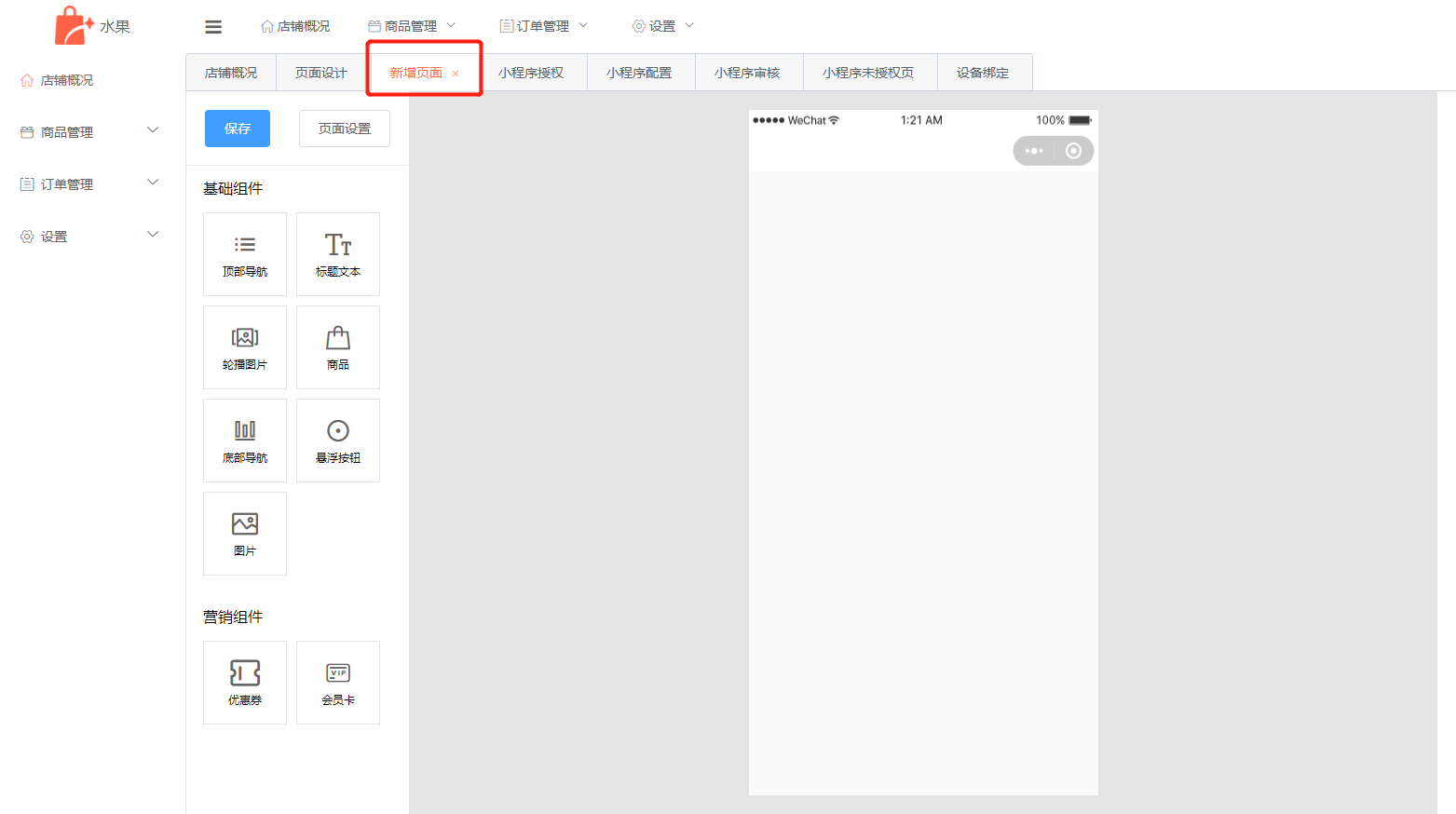 6. 购买我们微信小商店应用后,进入商家后台-微信小商店后台-小程序授权,提交审核,发布成功后即可到商品列表同步商品信息,装修页面等进行使用