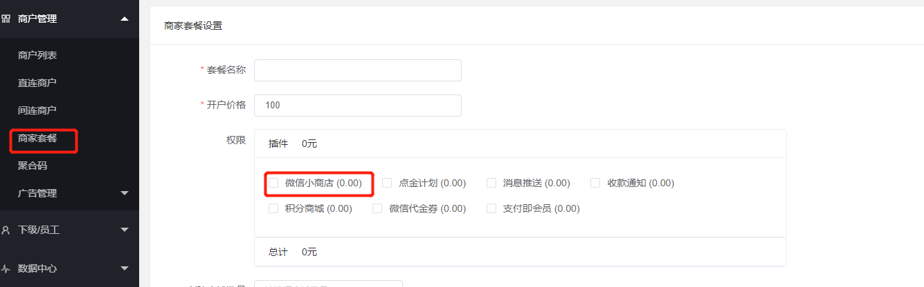 设置小商店套餐