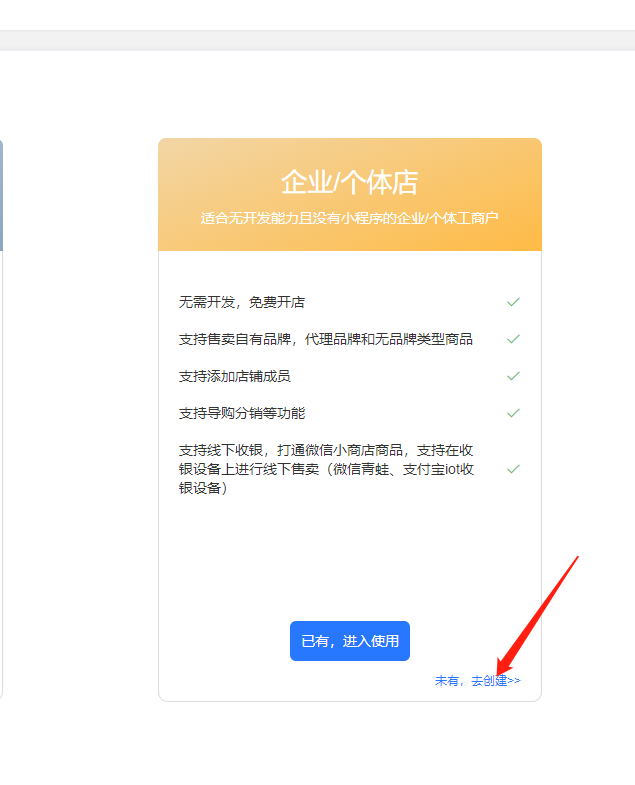 会有个页面引导去注册官方的小商店