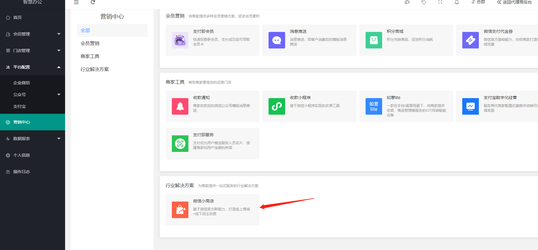 2.代理商给商家开启小商店套餐