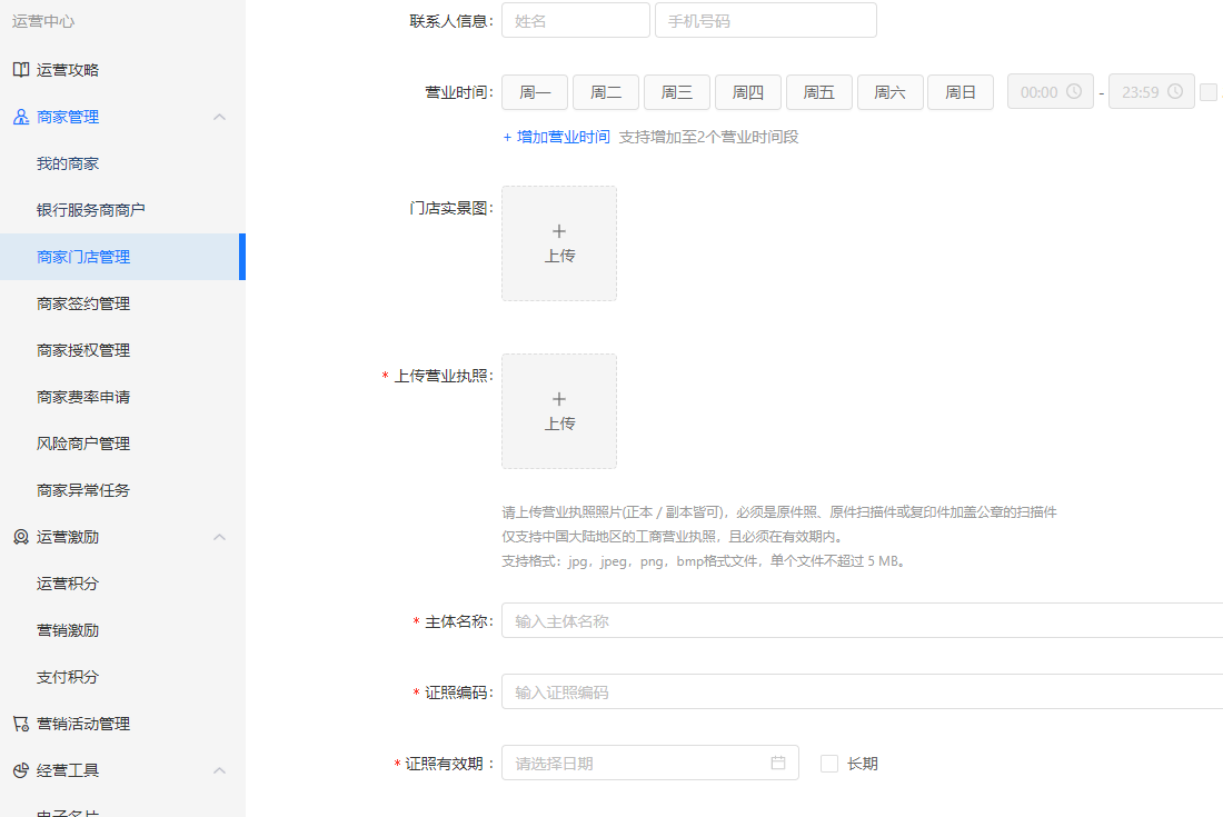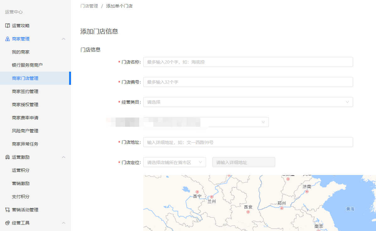 #### 2、填写门店信息