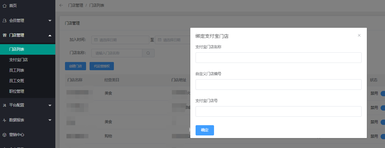 - 3.3创建支付宝门店