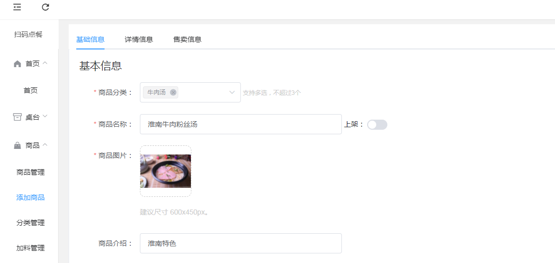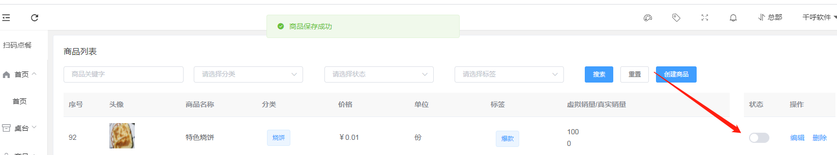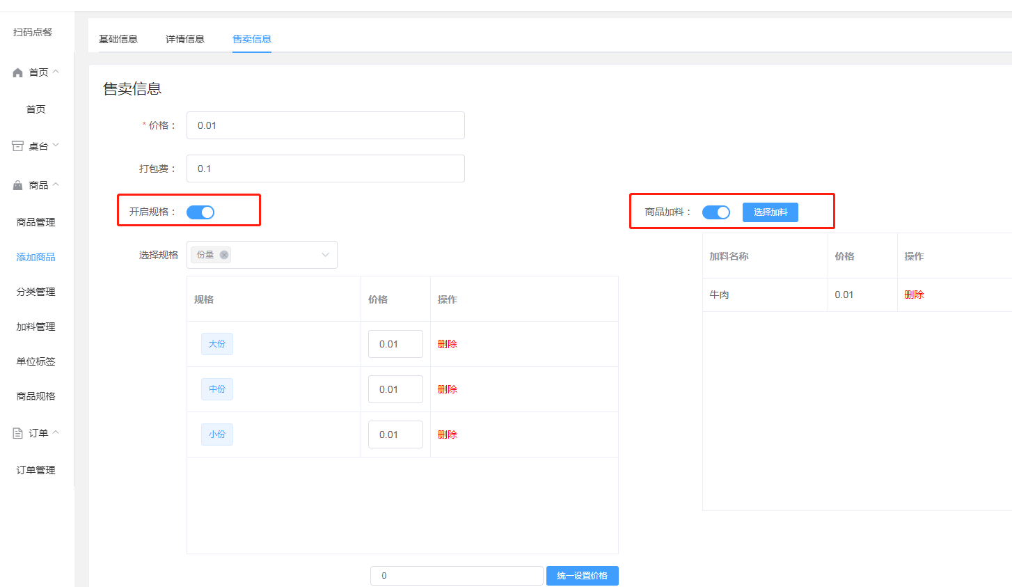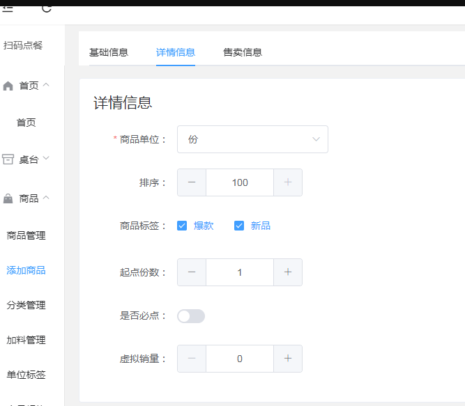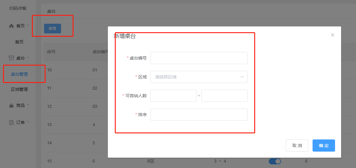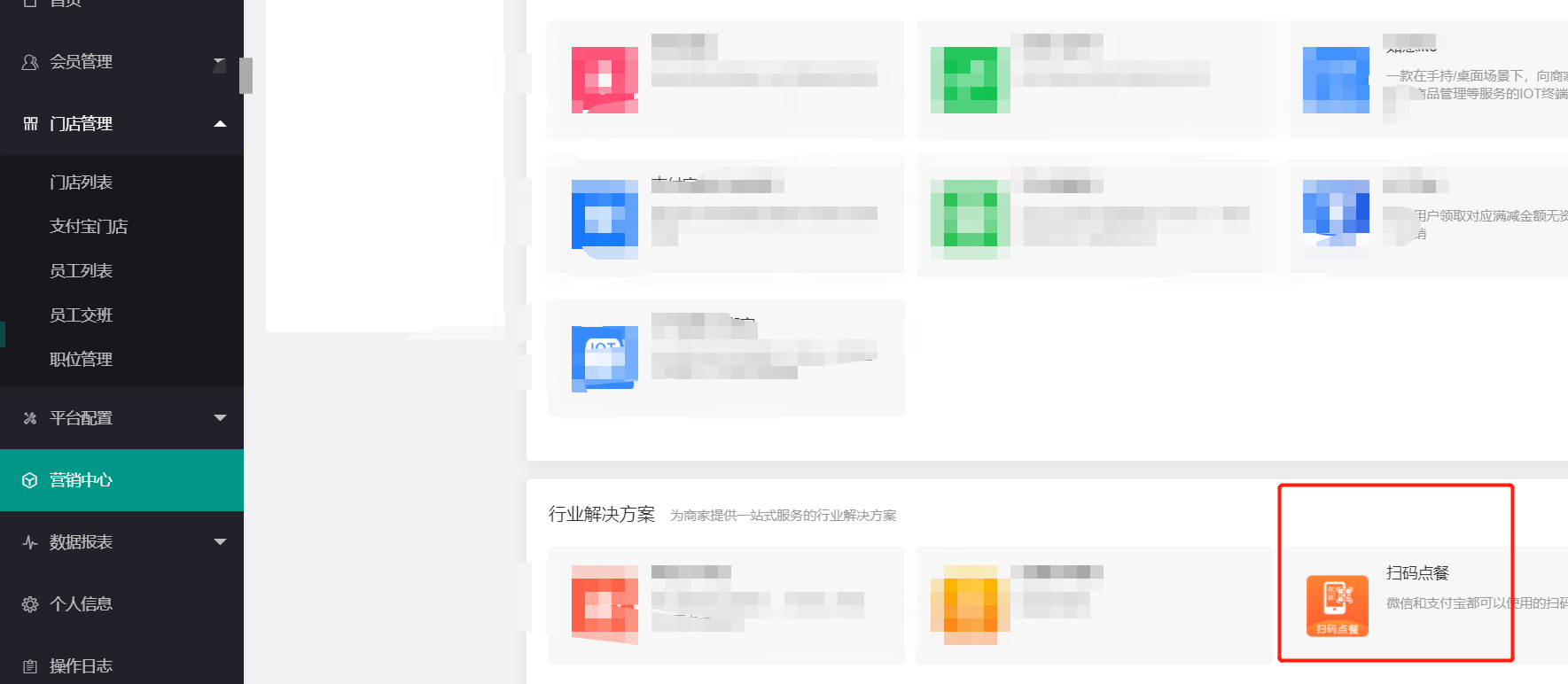 1、进入商家后台,点击营销中心--扫码点餐,进去进行添加商品以及桌台设置