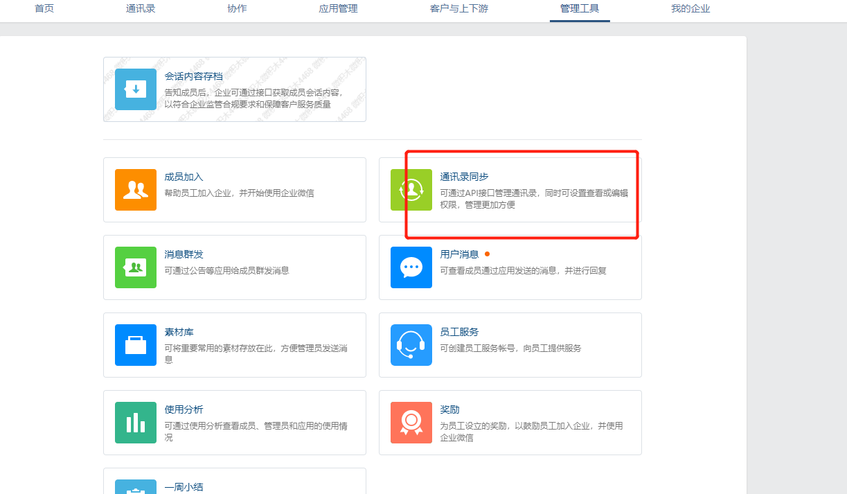 点击管理工具,找到通讯录同步,获取通讯录管理secret