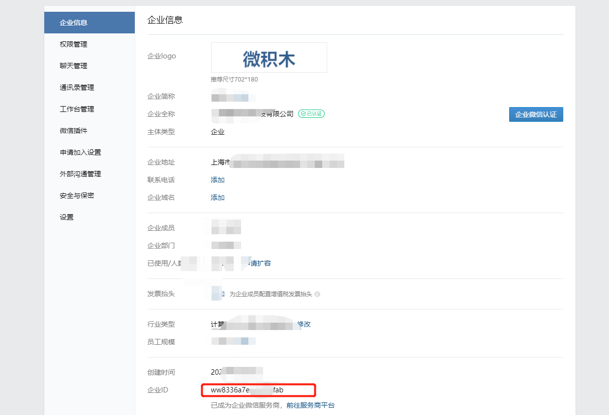 点击我的企业,获取企业ID