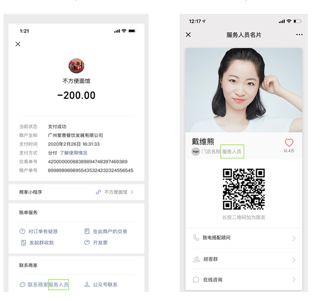 客户微信支付付完款后,会在客户的微信,微信支付页面,有一笔消费通知,消费通知下有个联系商家售后顾问