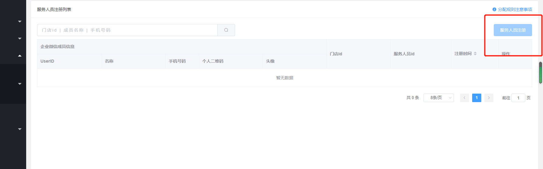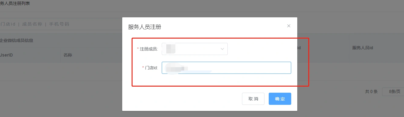 选择企业微信的成员,输入门店id,点击确定