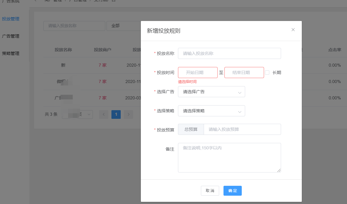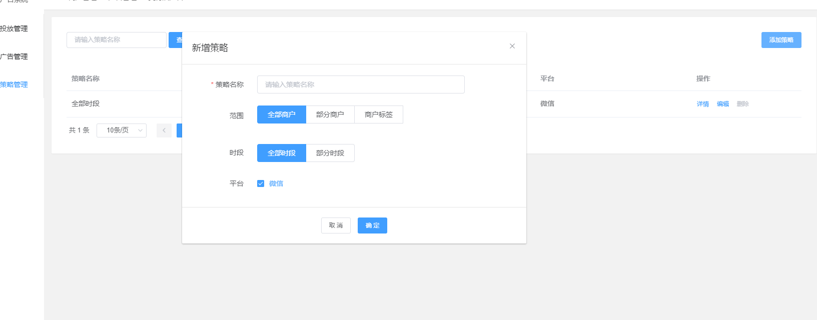 代理商添加广告也一样,先设置策略管理,再设置广告管理,再添加并投放广告
