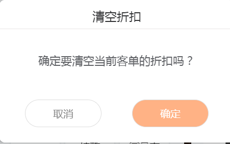 用户可点击【清空折扣】,取消此订单的所有折扣。清空折扣不包括会员折扣,包括整单,部分,抹零,优惠券还有赠菜退菜。