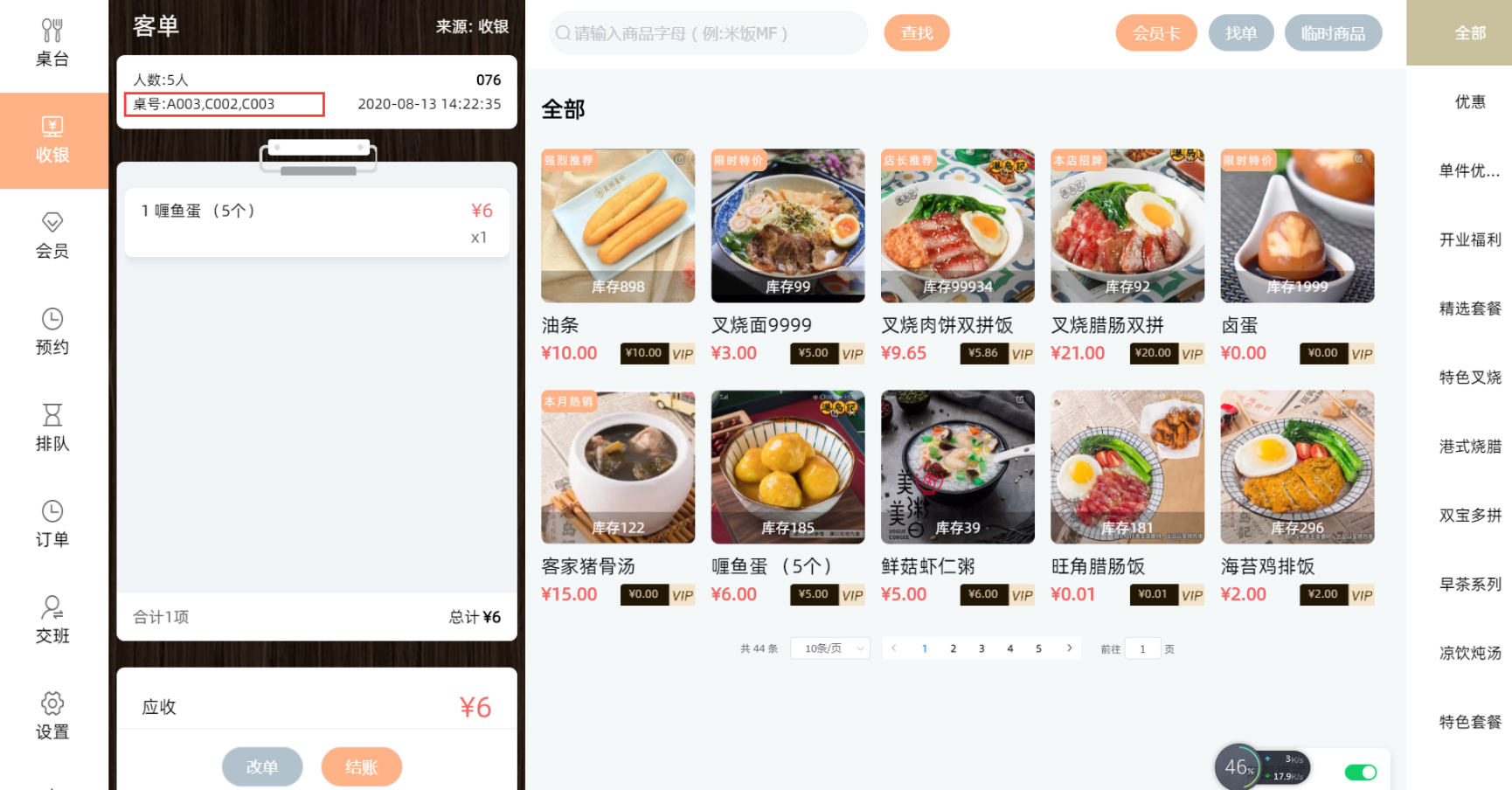 用户可点击【空桌】,查看还有多少空桌台,方便接待客人。