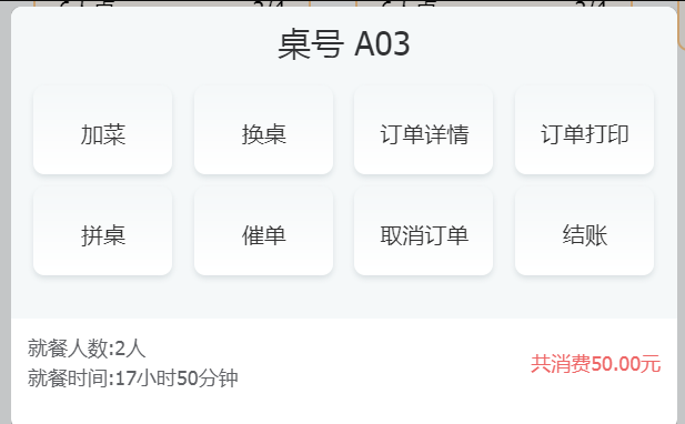用户可点击桌台图标,查看拼桌的详细信息。