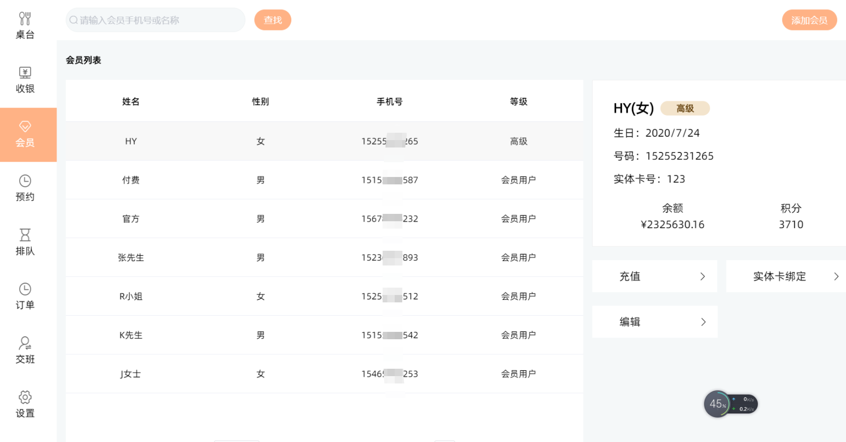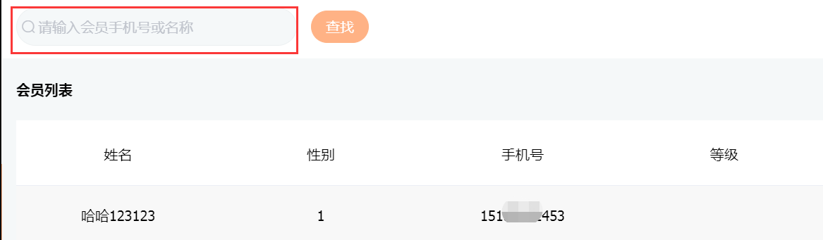 用户可输入会员手机号或名称,点击【查找】,即可在下方会员列表中显示出来。