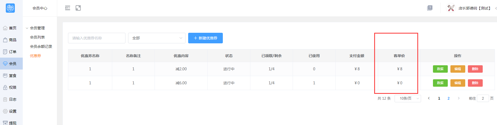 优惠券页面的客单价指的是支付金额除以券数,平均每张券的消费金额是多少