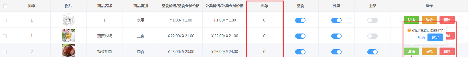 当现实商品库存为0时,商家可点击【沽清】,将库存清空。此时收银台会显示此商品下架无法再选择。小程序会在加入购物车的时候提示无库存。