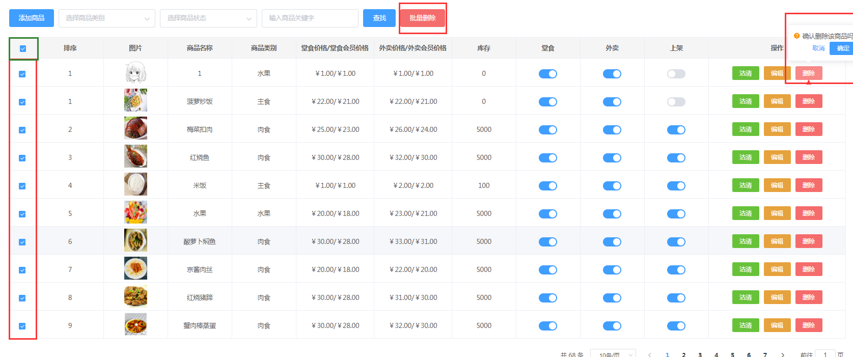 商家如果需要删除单个商品也可以点击操作栏中的【删除】,点击确认即可。