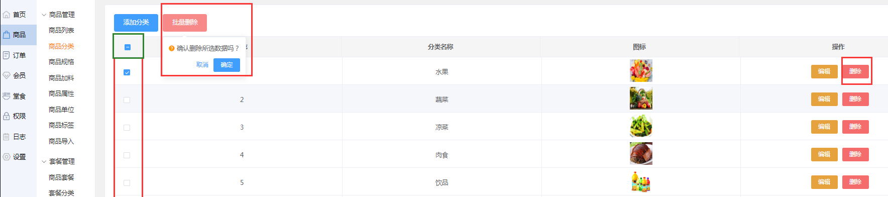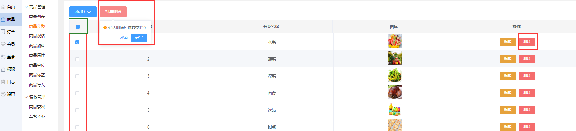 商家如果需要删除单个商品也可以点击操作栏中的【删除】,点击确认即可。