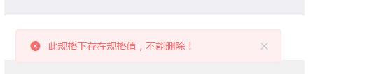 (当此规格值被使用后,此规格值就无法删除,会出现下面的提示)