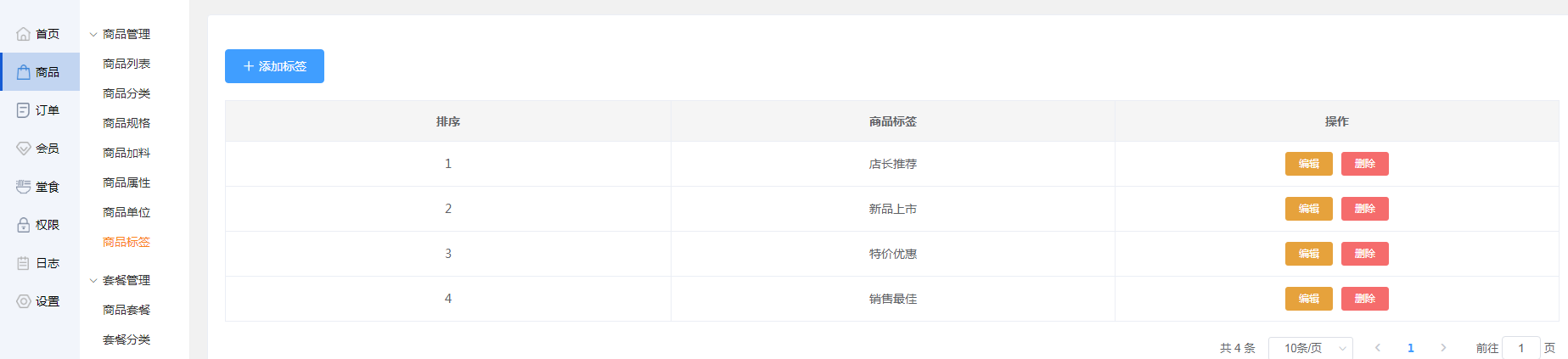 当商家不想要这个标签时,可点击操作栏中的【删除】,删除这条记录。