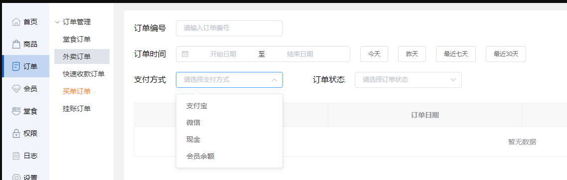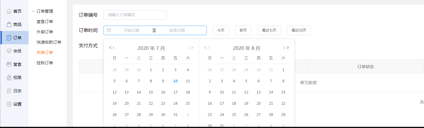 也可以直接点击后面的【今天】【昨天】【最近七天】【最近30天】,筛选此时间段内的订单。