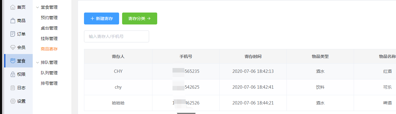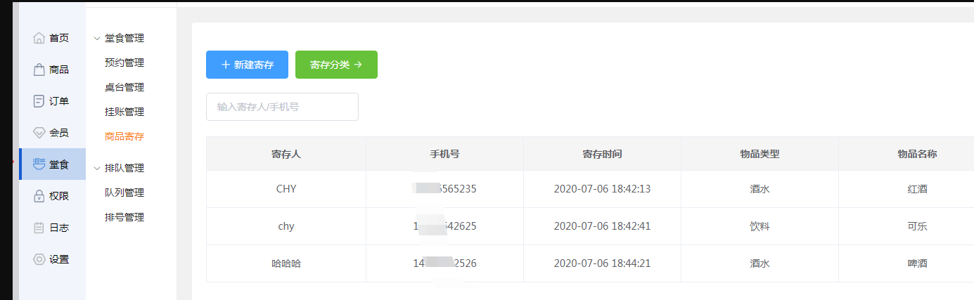 商家可点击【新建寄存】,将客户需要寄存的东西,根据弹框内容填写信息。(用户需要先在【寄存分类】中新建寄存)