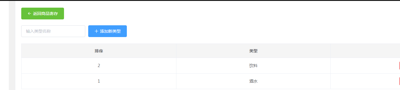 商家可点击【寄存分类】,进入页面后点击【添加新类型】,填写类型名称和排序,点击【确定】即可。添加完成后,商家可点击【返回商品寄存】回到主页面。