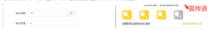 集点周期:指的是此活动的活动时间,另外此活动会默认显示在小程序,客户的参与是此活动出现后,客户下的第一笔单子,结账完后说明客户参加了这个活动,在小程序端还会有活动时间倒计时。