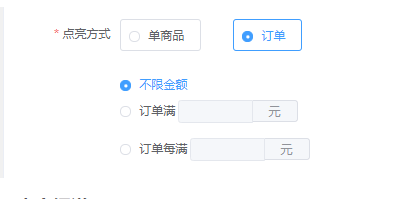 用户在选择订单时,可选择不限金额,订单满多少元和订单每满多少元三种模式。