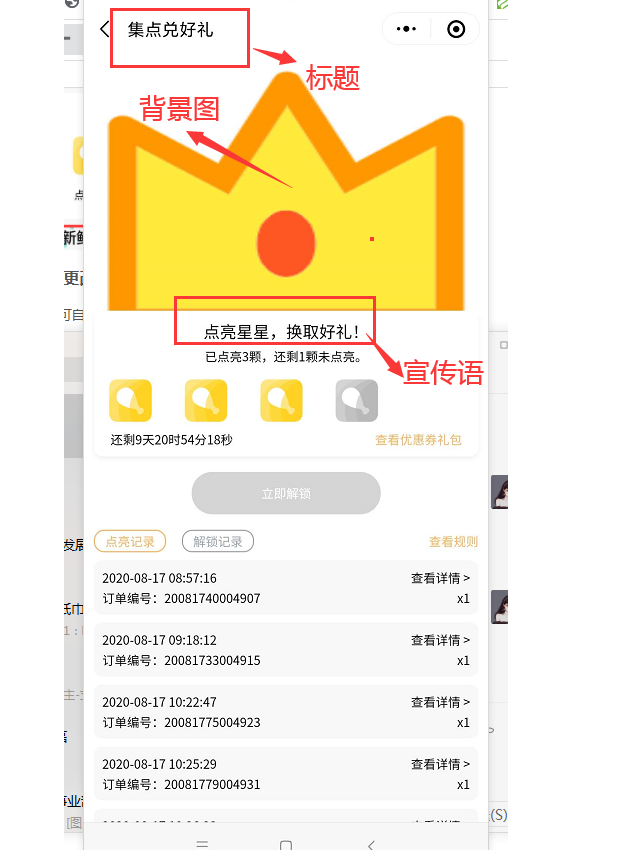 (点亮成功后,客户可点击立即解锁介入查看优惠券礼包页面,点击领取优惠券)