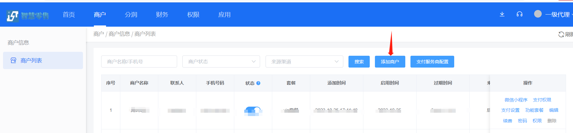 商户管理里面点击添加,创建商户