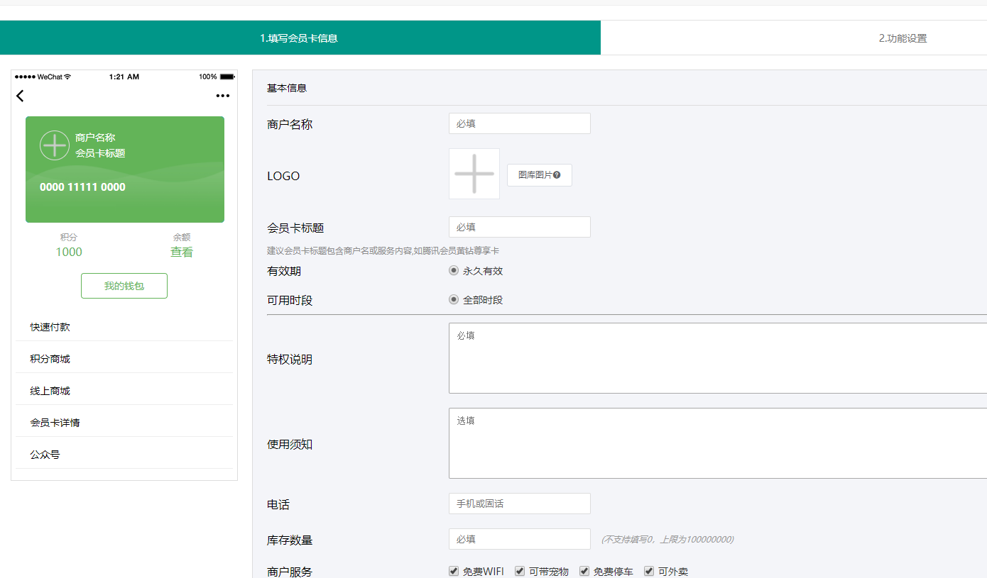 - 2.1微信会员卡