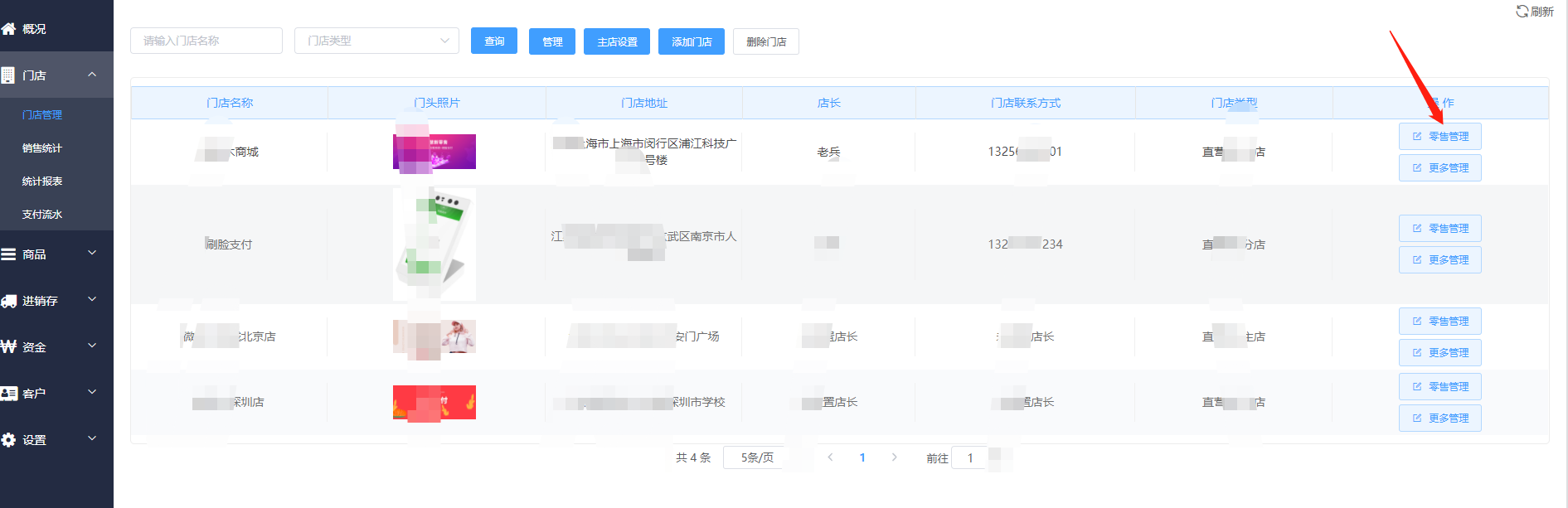 打开门店管理——点击零售管理进入