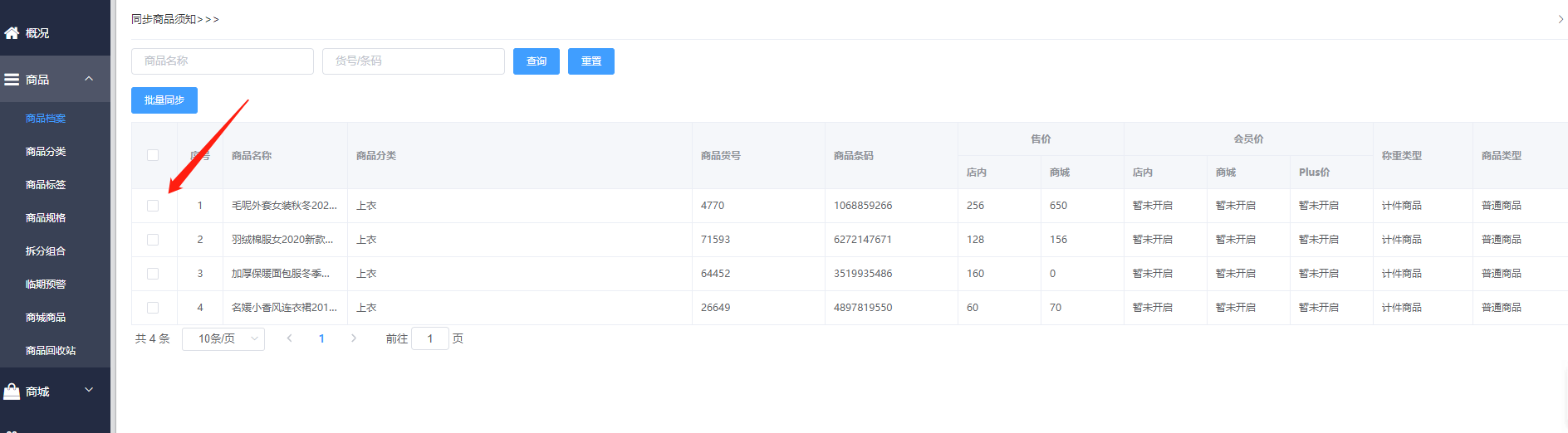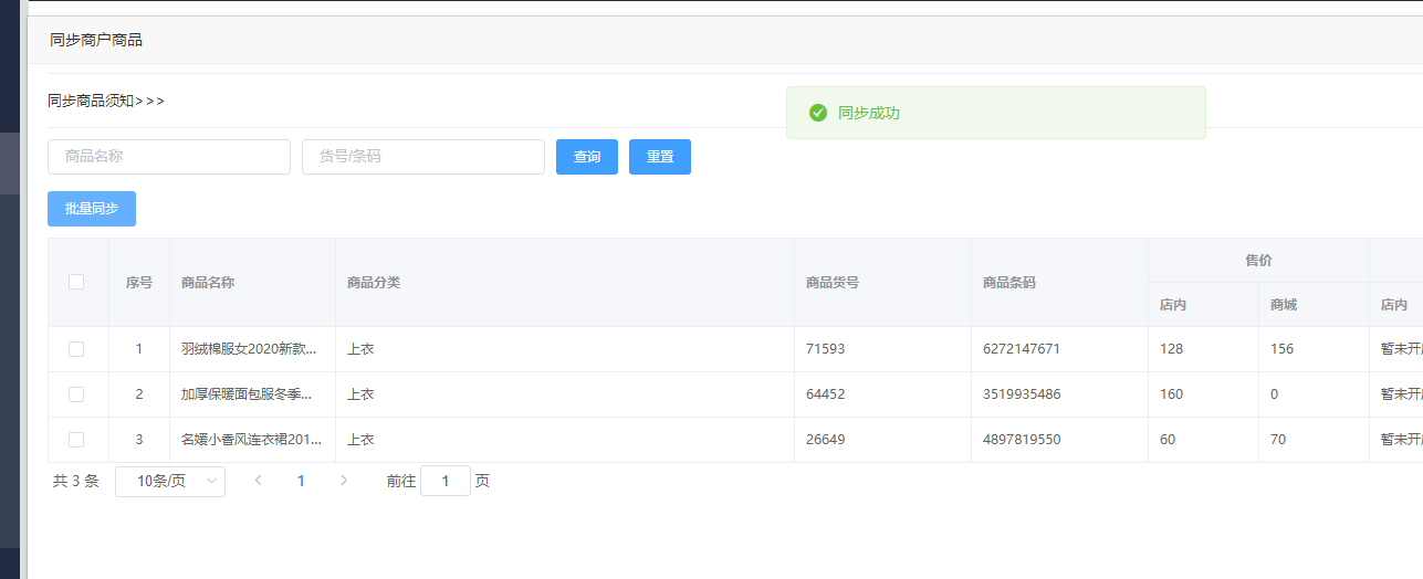 2.一个商品在一个门店只能同步一次