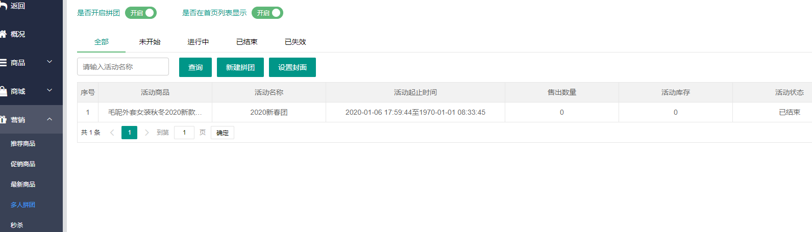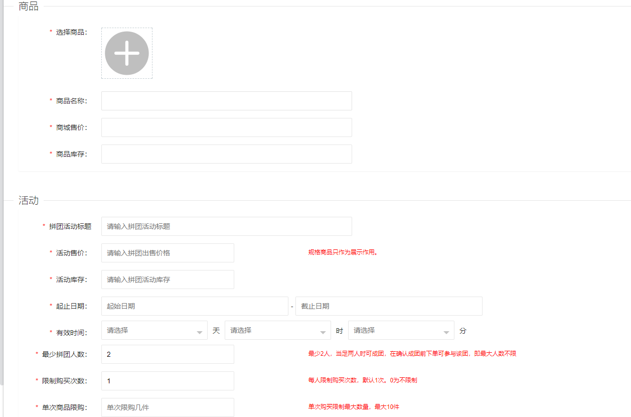 设置团购活动商品