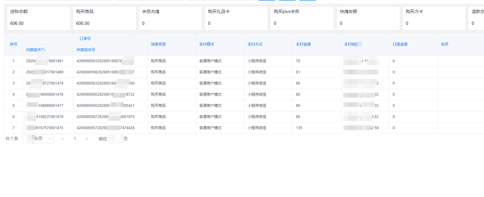 - 1.店内收款明细