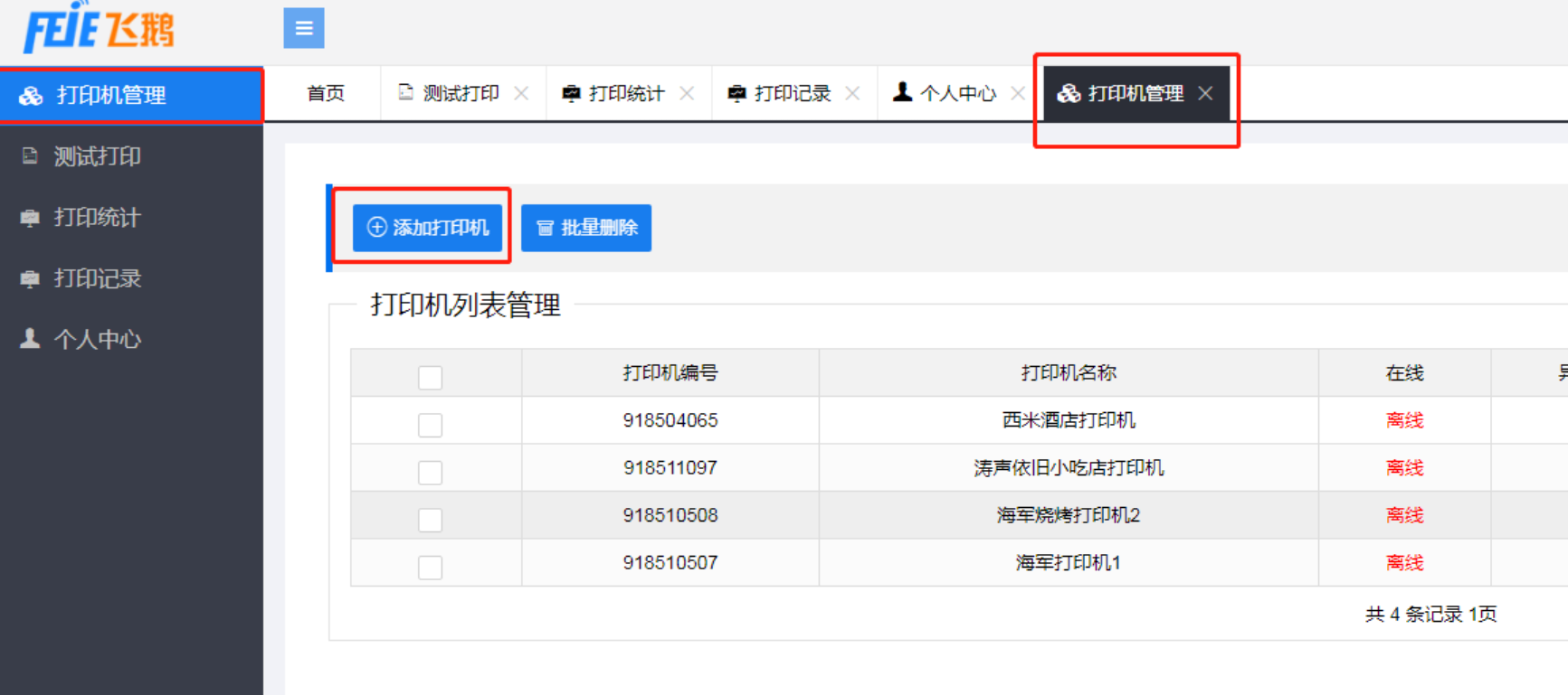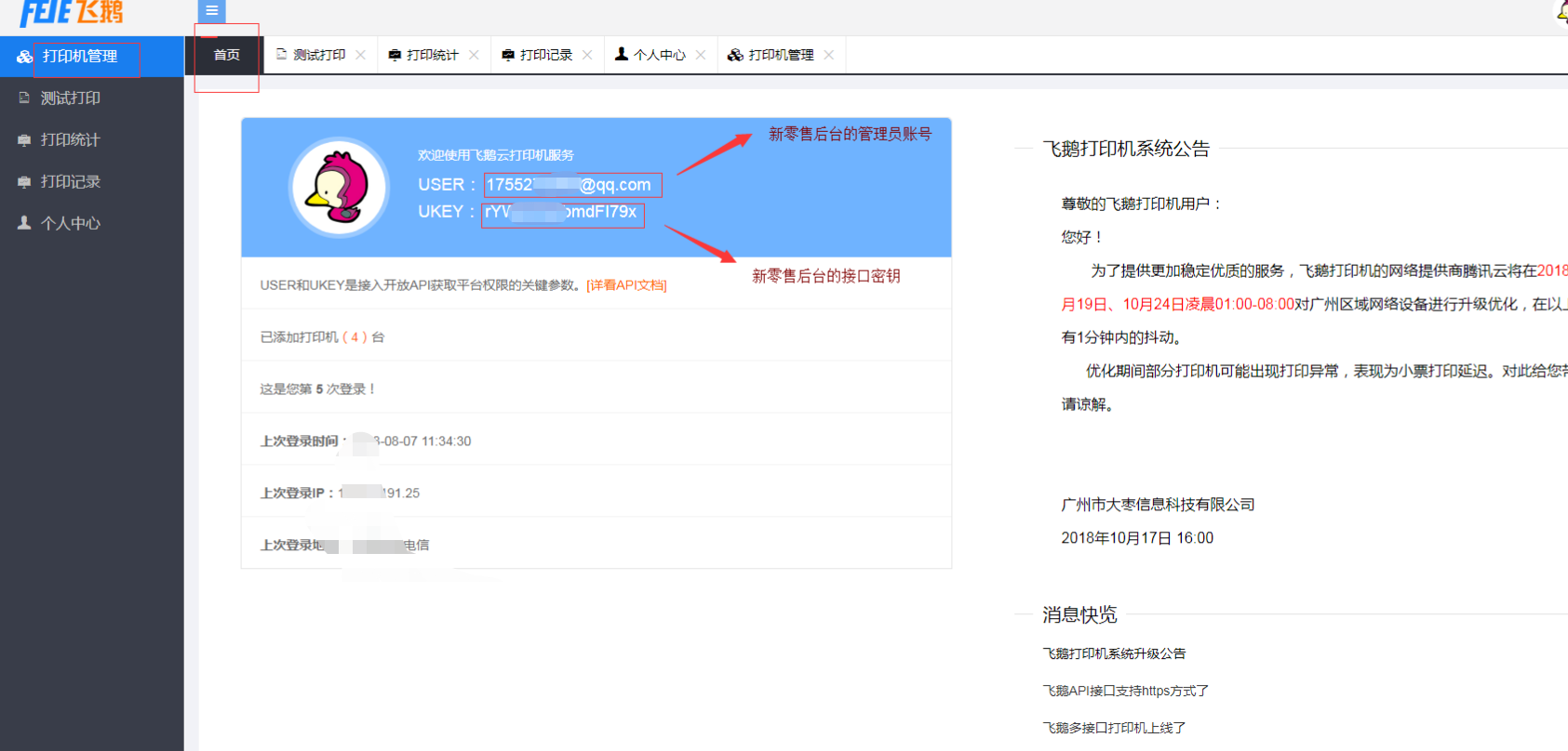 商户得先有个飞鹅云官网的官网注册个账号,登陆账号,在账号中添加新的打印机。