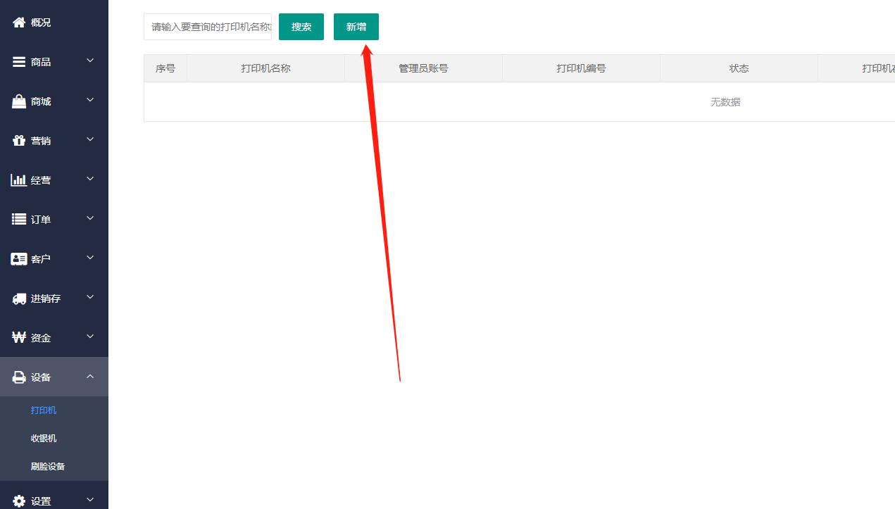 5、进入新零售门店后台添加打印机管理