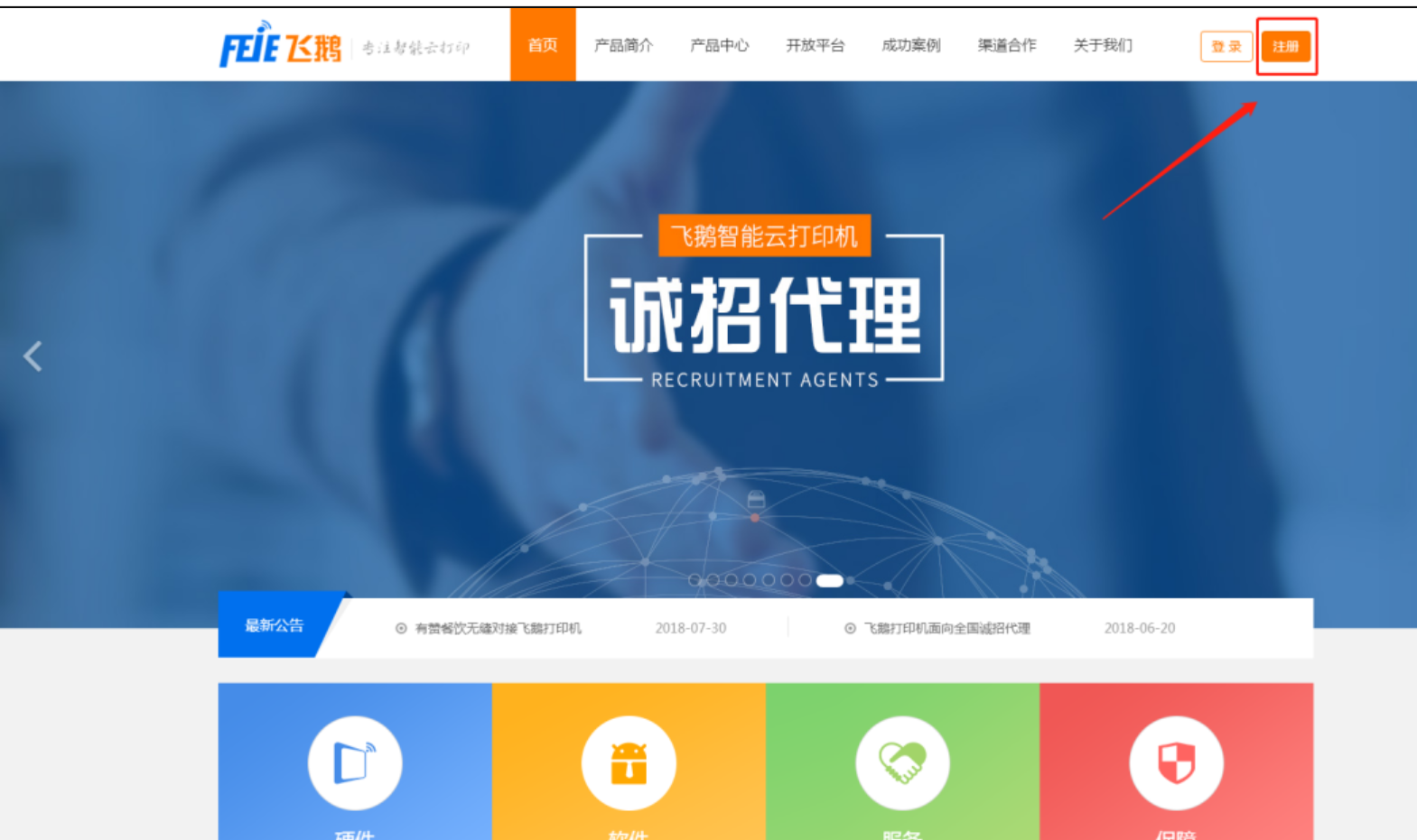 2、登陆飞鹅云官网注册账号。百度搜索飞鹅云官网,点击注册