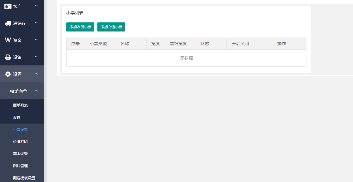 2.同一时间同一类型小票只能开启一种设置。