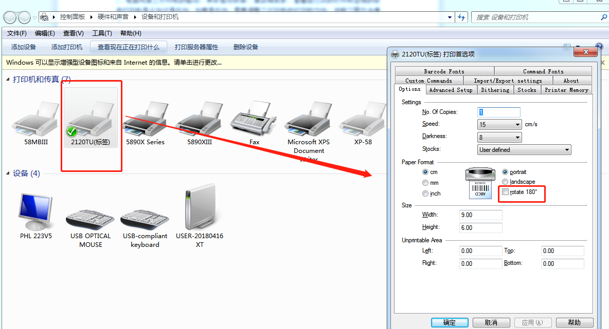 1、电脑先装上打印机的驱动,具体驱动安装,请咨询卖家,查看自己买的打印标签纸的放进打印机是正向还是反向,如果是反向,需要调整下打印机的打印的方向,按照下图方法操作