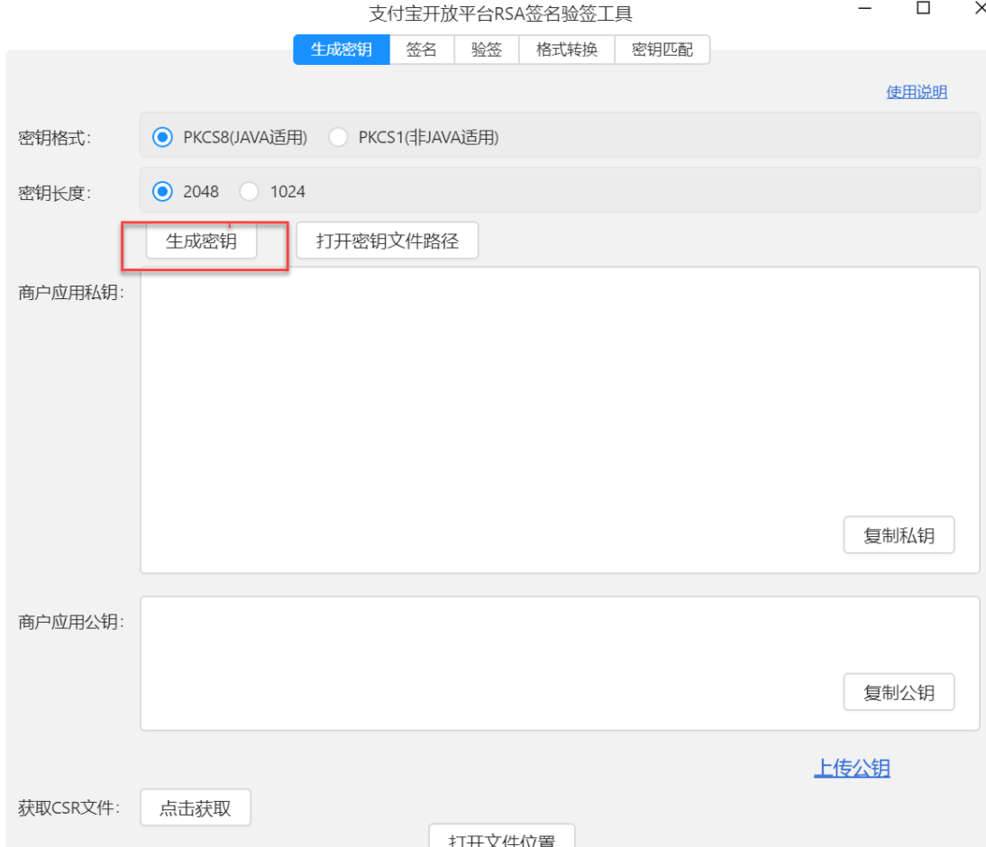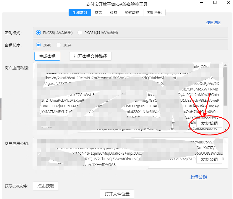 8、点击 复制私钥 至商户后台支付宝商户私钥