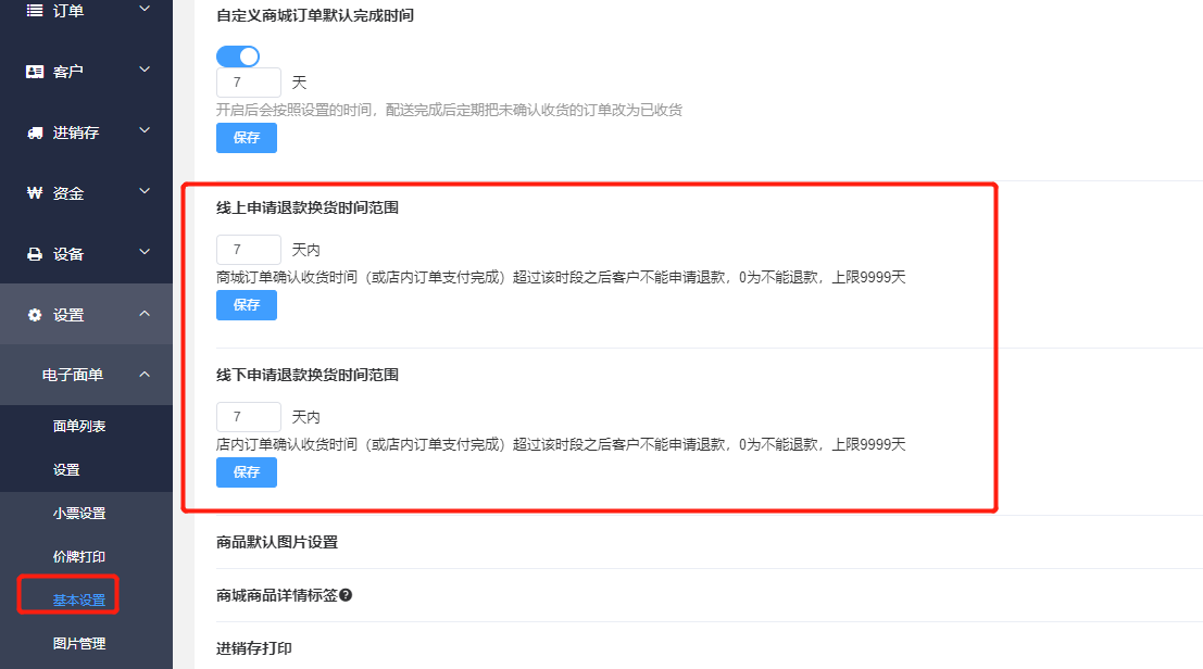 线上线下退货时间设置