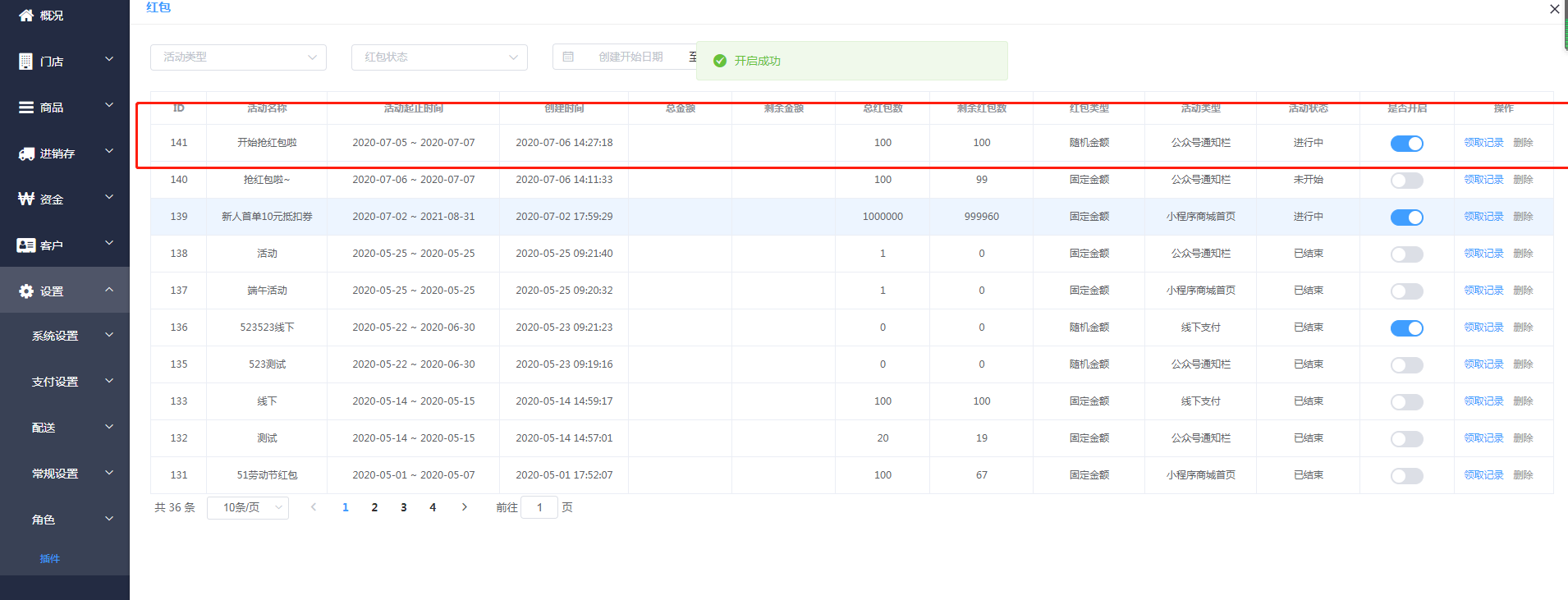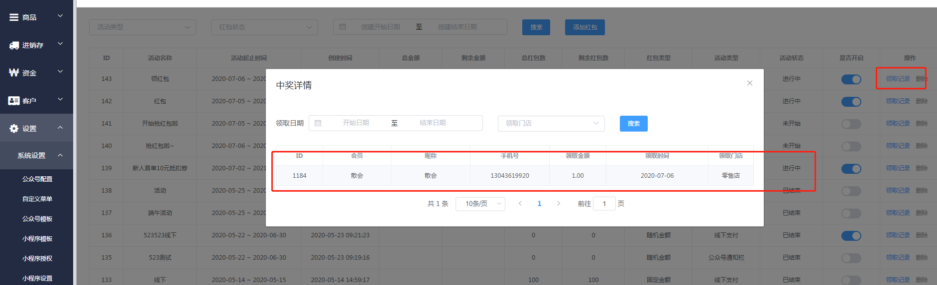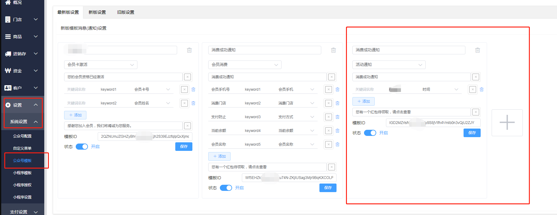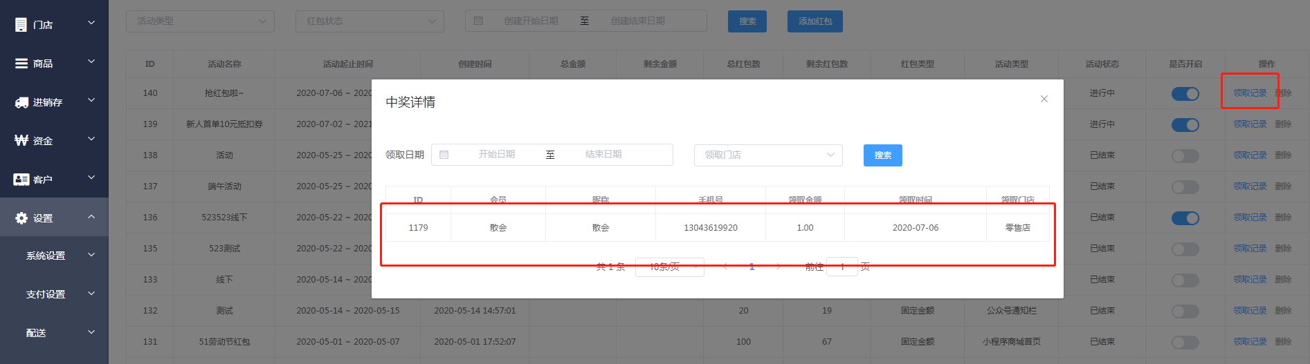 1.添加固定金额红包,可以选择消费多少送此红包,参加活动的门店,和限制会员参与等级