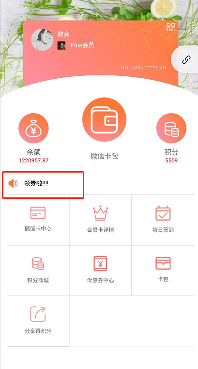 3.关注公众号,会员线下微信支付或者余额支付都会推送一个模板消息