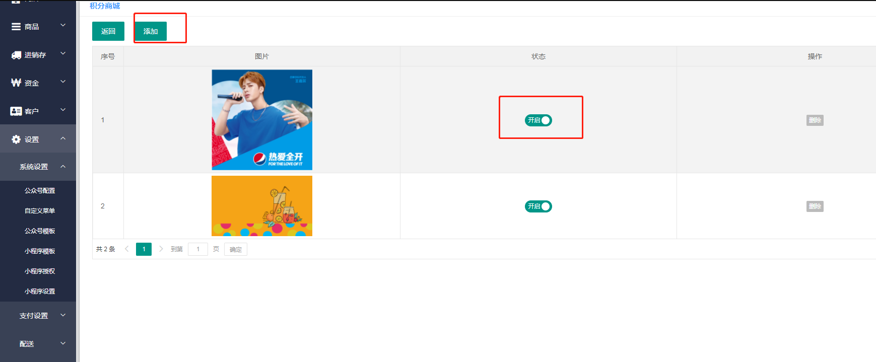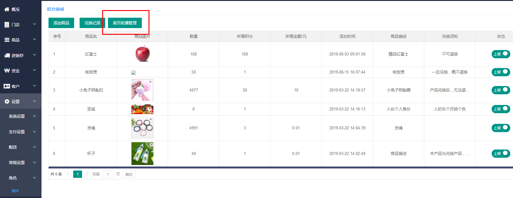 2、点击首页轮播管理,可以添加积分商城首页的轮播图
