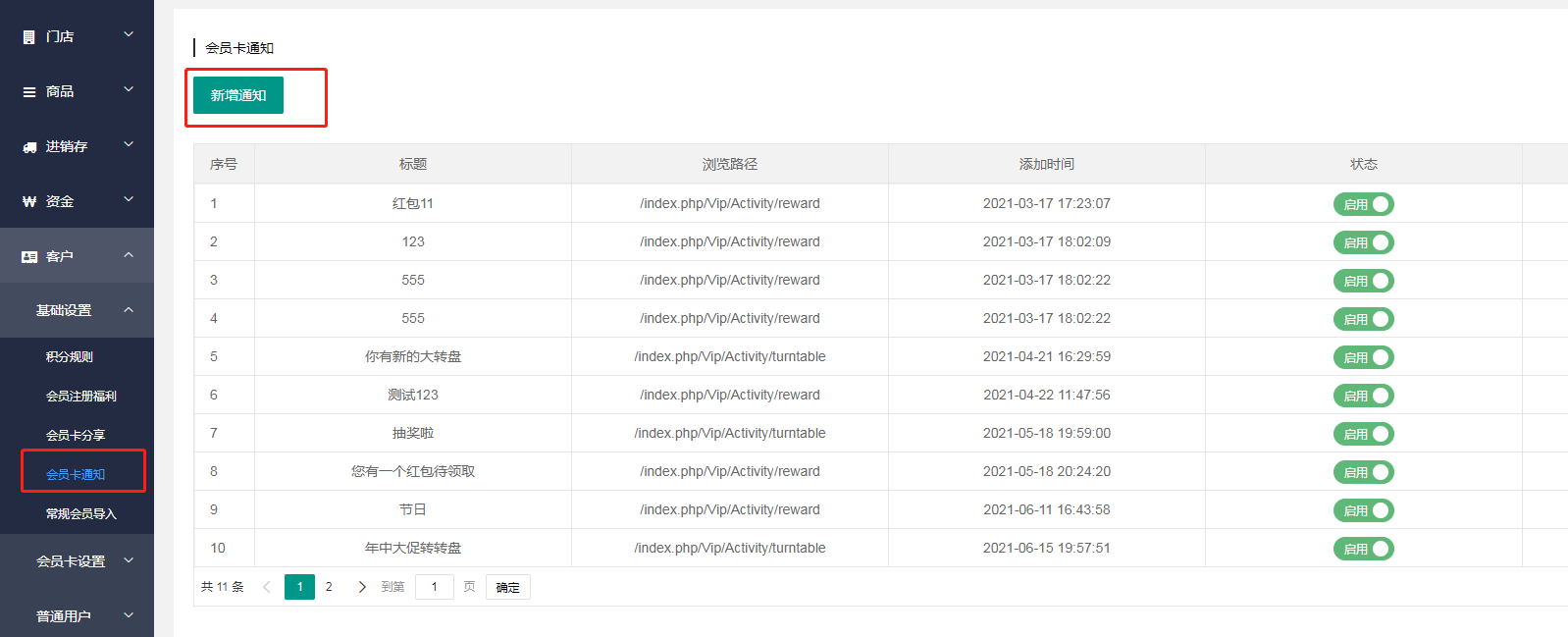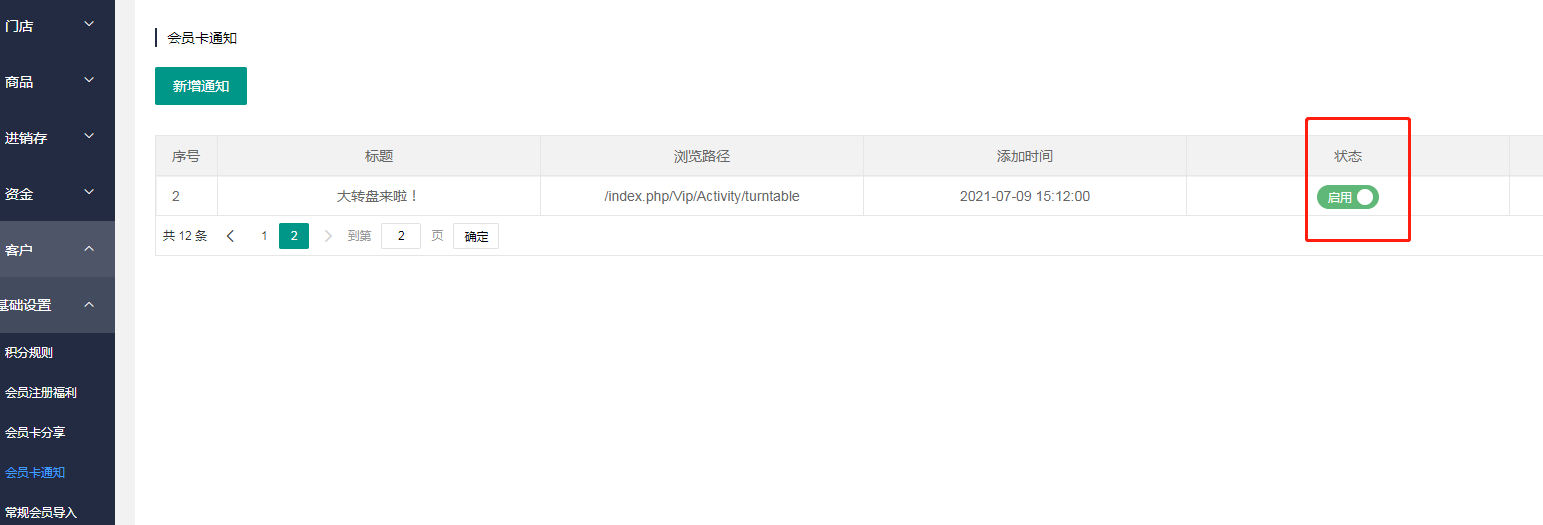 一、添加会员卡通知