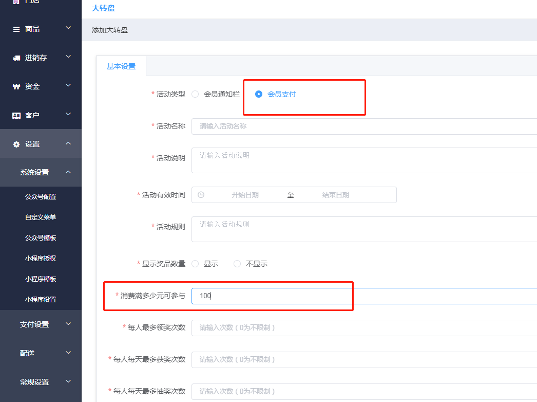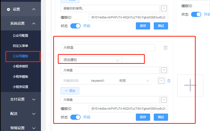 2.会员消费满设置的大转盘金额后,关注就会自动推送一个模板消息,会员点击模板消息即可抽奖