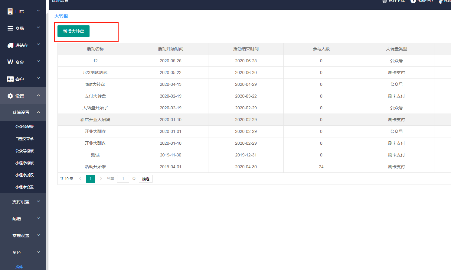 二、进入大转盘页面,点击查看——新增大转盘,根据页面提示填写大专盘内容(注:大转盘必须要填满8个,才可运营起来)