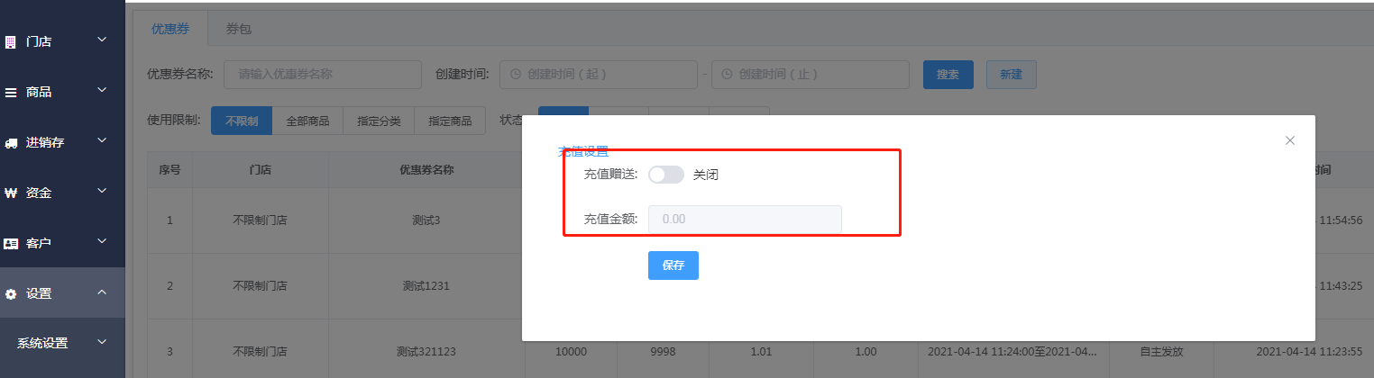 客户只要充值满足条件的金额,就会自动给客户发放所有满足条件的优惠券