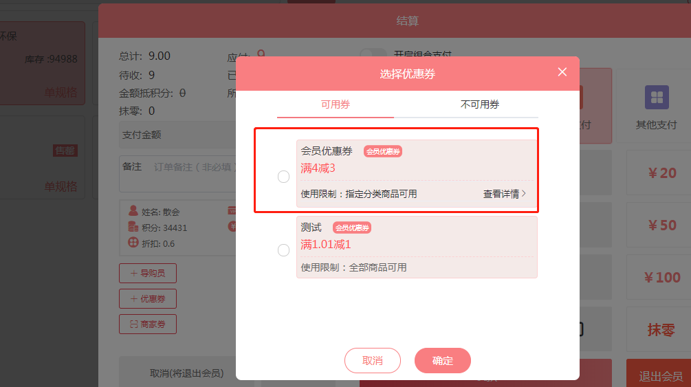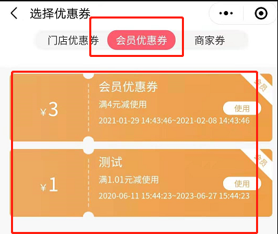 说明:此优惠券只针对会员在商城或者收银端使用,有模板消息,需要商户先配置好优惠券模板消息